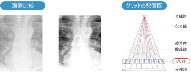 散乱線を除去することで、画像のコントラストを向上させ診断のしやすい画像が取得できるようになります。