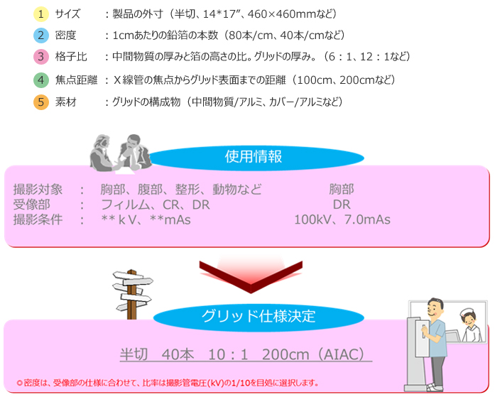 撮影部位、撮影条件、焦点距離に合わせて選びます。