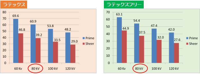 遮へい率は、80kV下で60%(薄手)、40%(超薄手)と手指への被ばくを約半分に減らします。