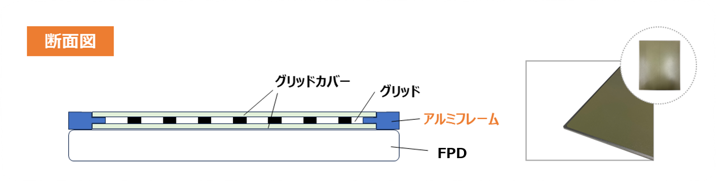 - フレーム加工を施すことでグリッドを保護し、落下などの衝撃から守ります。